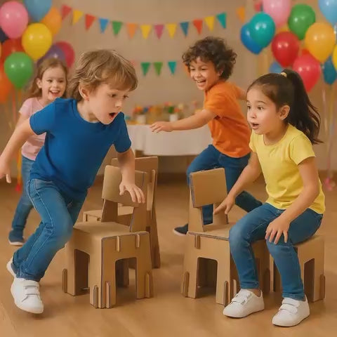 Esta silla de cartón corrugado Kartoy’z, ecológica y resistente, es ideal para niños de 2 a 6 años. Perfecta para fiestas, juegos creativos y momentos de lectura o pintura, convierte cualquier espacio en un divertido lugar de juego individual o en grupo.